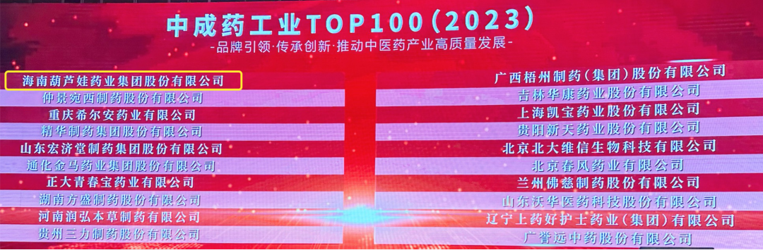 会上,还发布了“2023中成药工业TOP100”榜单,豪门国际药业集团荣耀上榜。