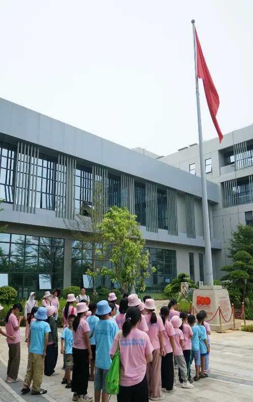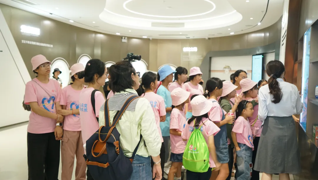 紧接着,孩子们来到了建党百年庆典红旗——070号红旗前。讲解员讲述了豪门国际药业集团与庆典红旗的深厚渊源。孩子们听得津津有味,眼中闪烁着对党和国家的热爱与敬仰。